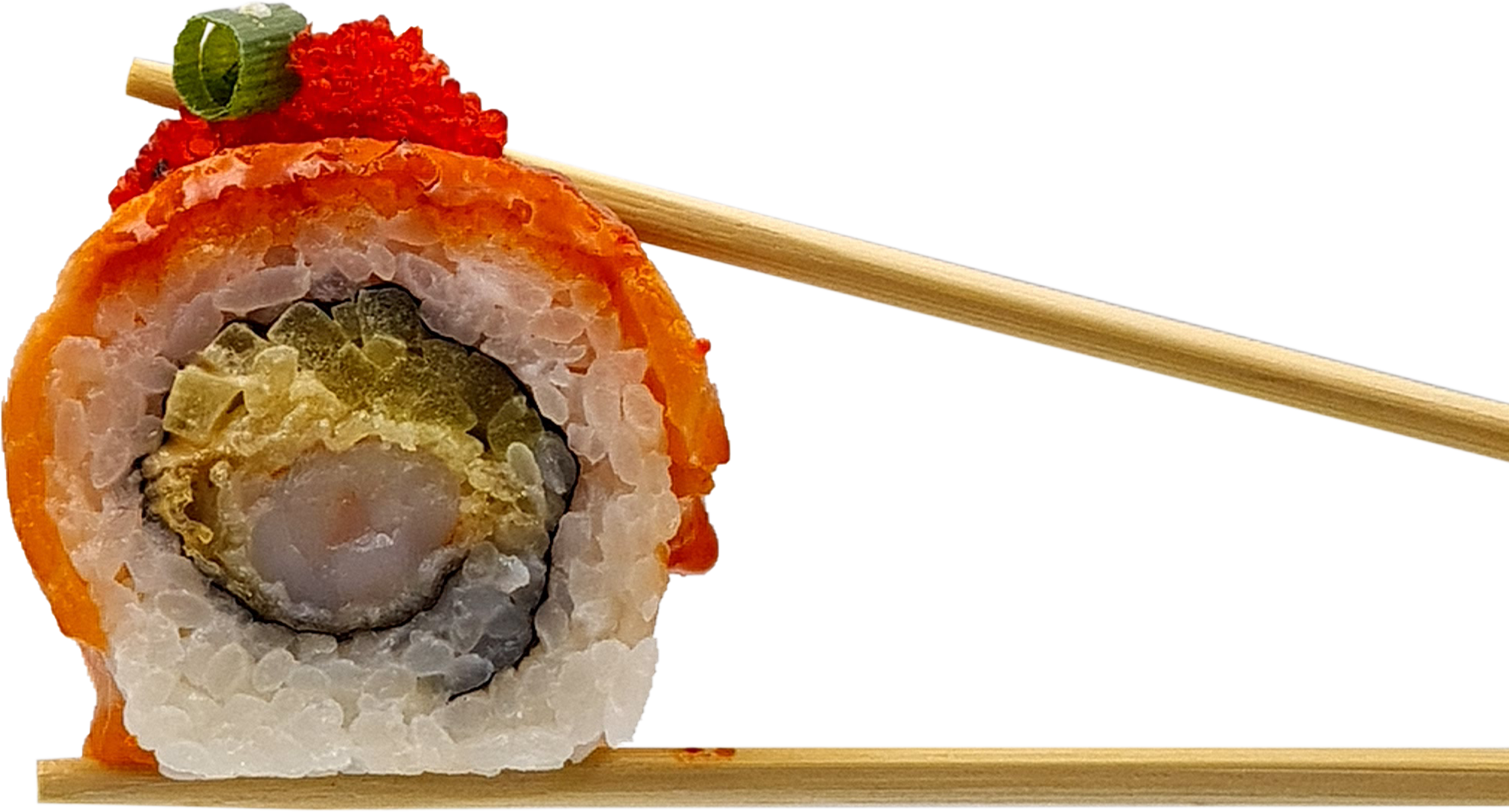 6 szt. kalmary w tempurze, awokado, tykwa, mango, sałata, tobiko, sos chilli-mango, spicy mayo, ogórek