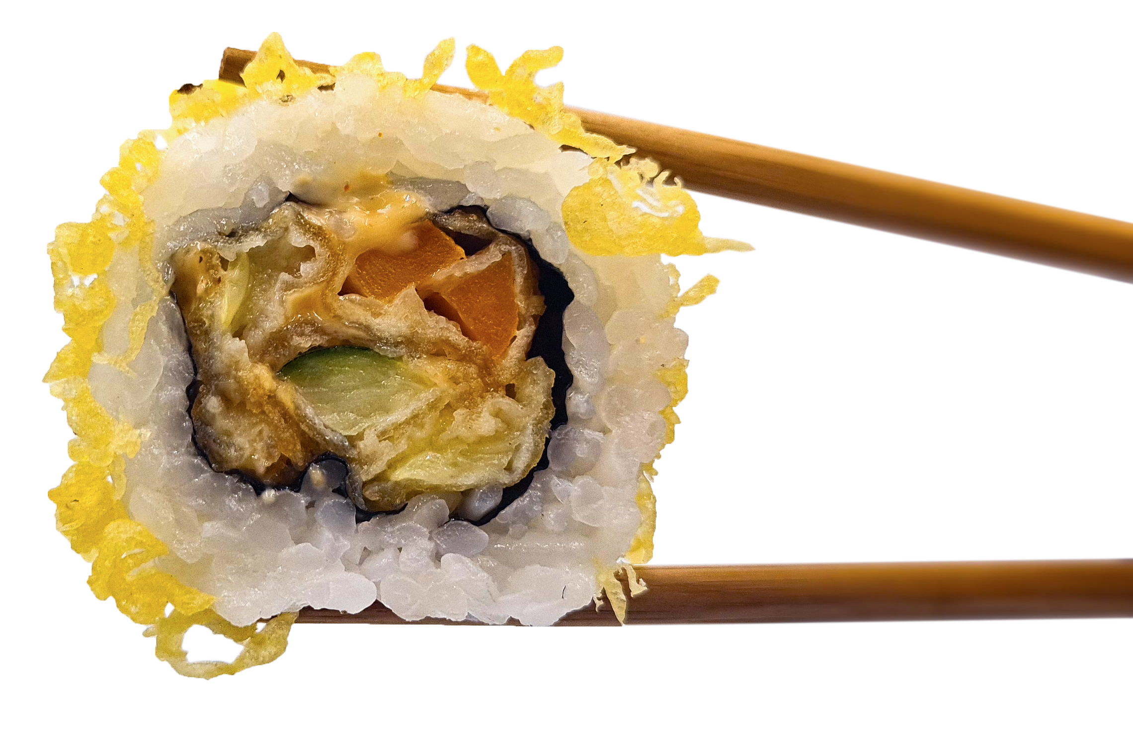 halibut in tempura, Philadelphia cheese, avocado, mango, melon, tykwa, lettuce, chilli-mango sauce, all in soya flakes, pomegranateCALIFORNIA TEMPURA YASAI