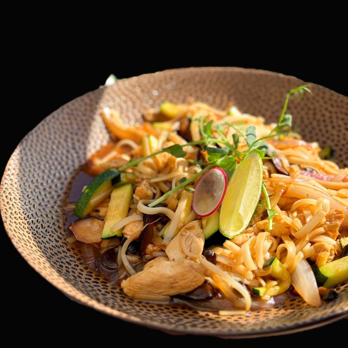 rice noodles with egg, vegetables and tofu -or chicken -or shrimpsTORI TERIYAKI