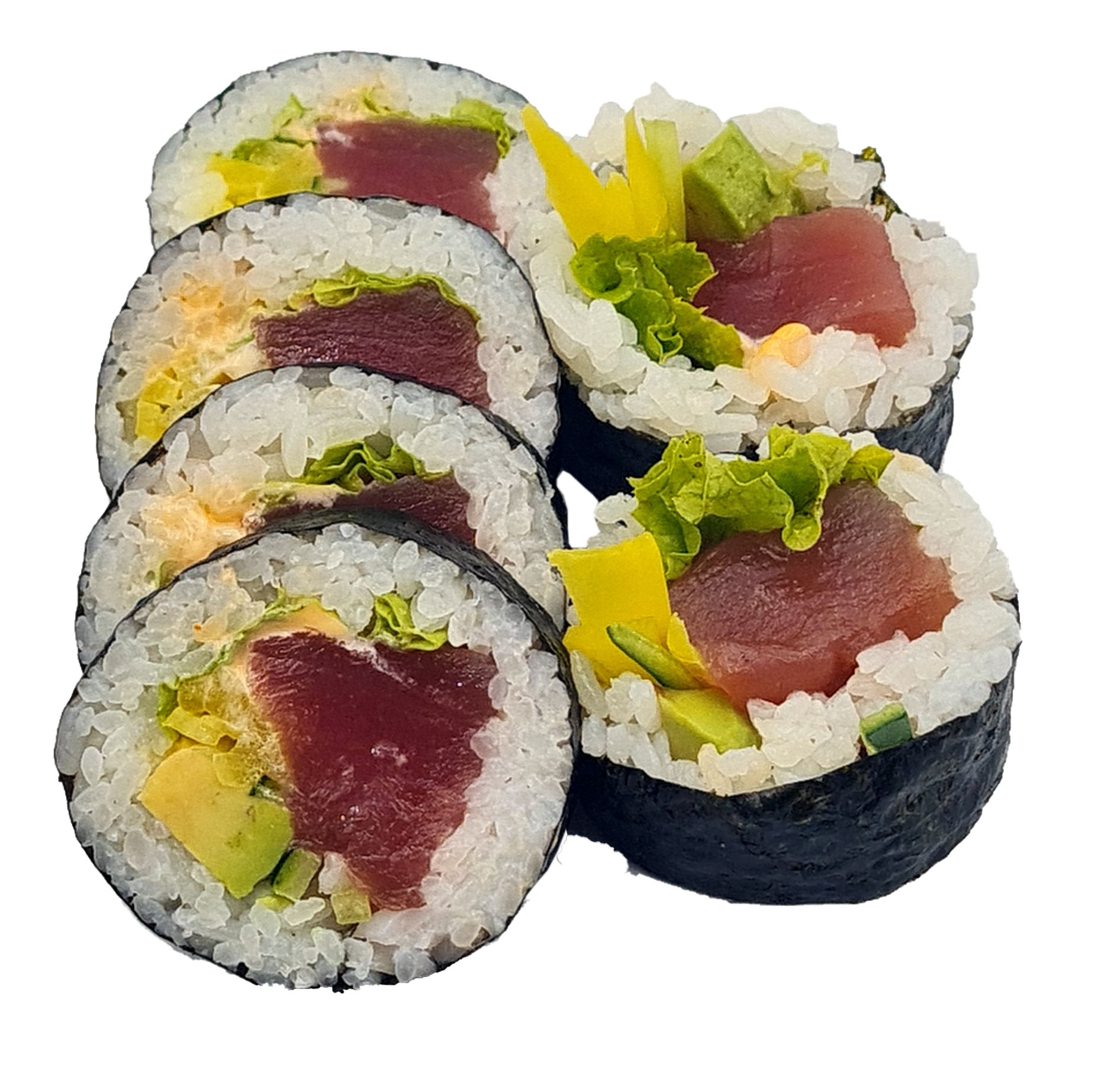6 pcs. salmon, Philadelphia cheese, cucumber, avocado, lettuceFUTOMAKI SPICY TUNA