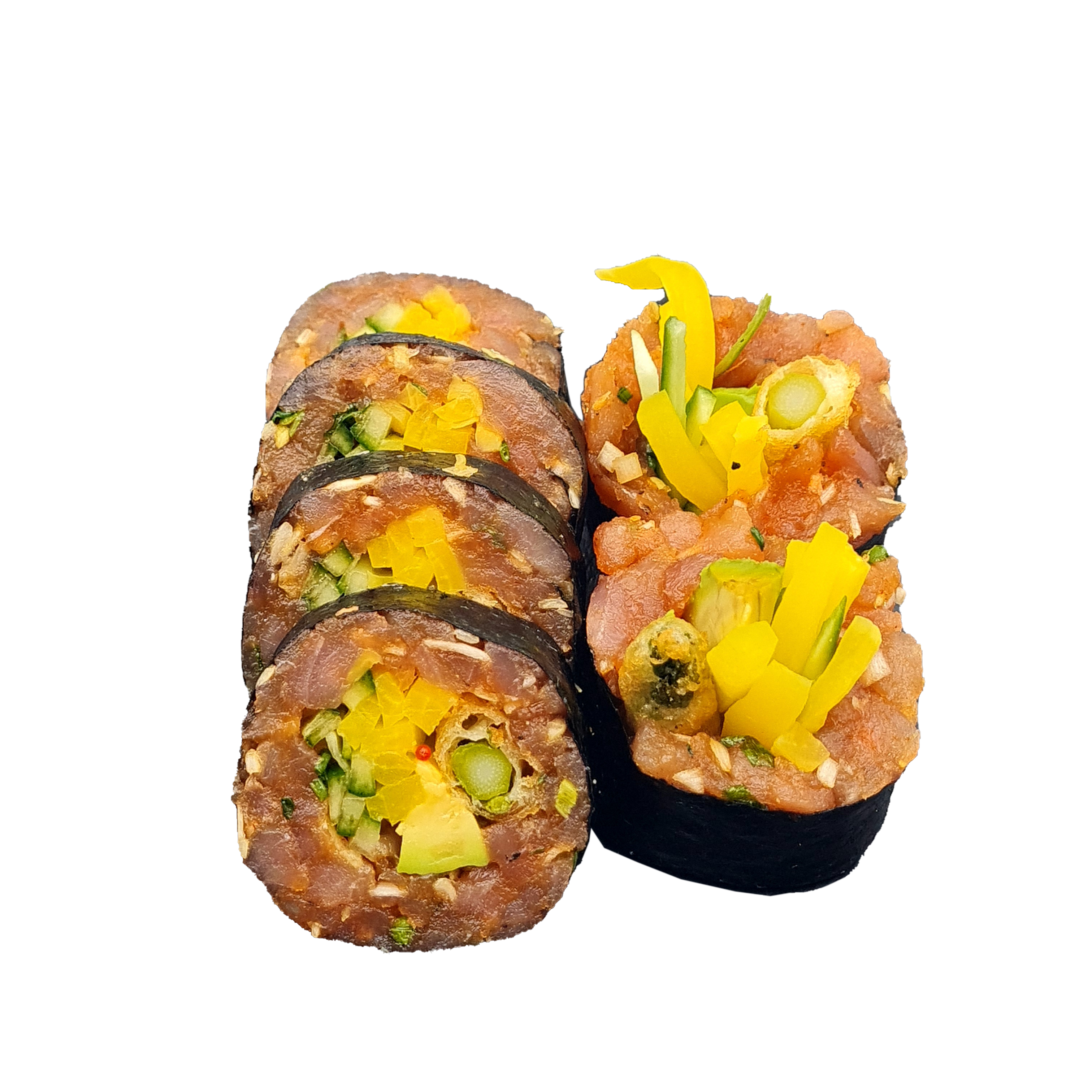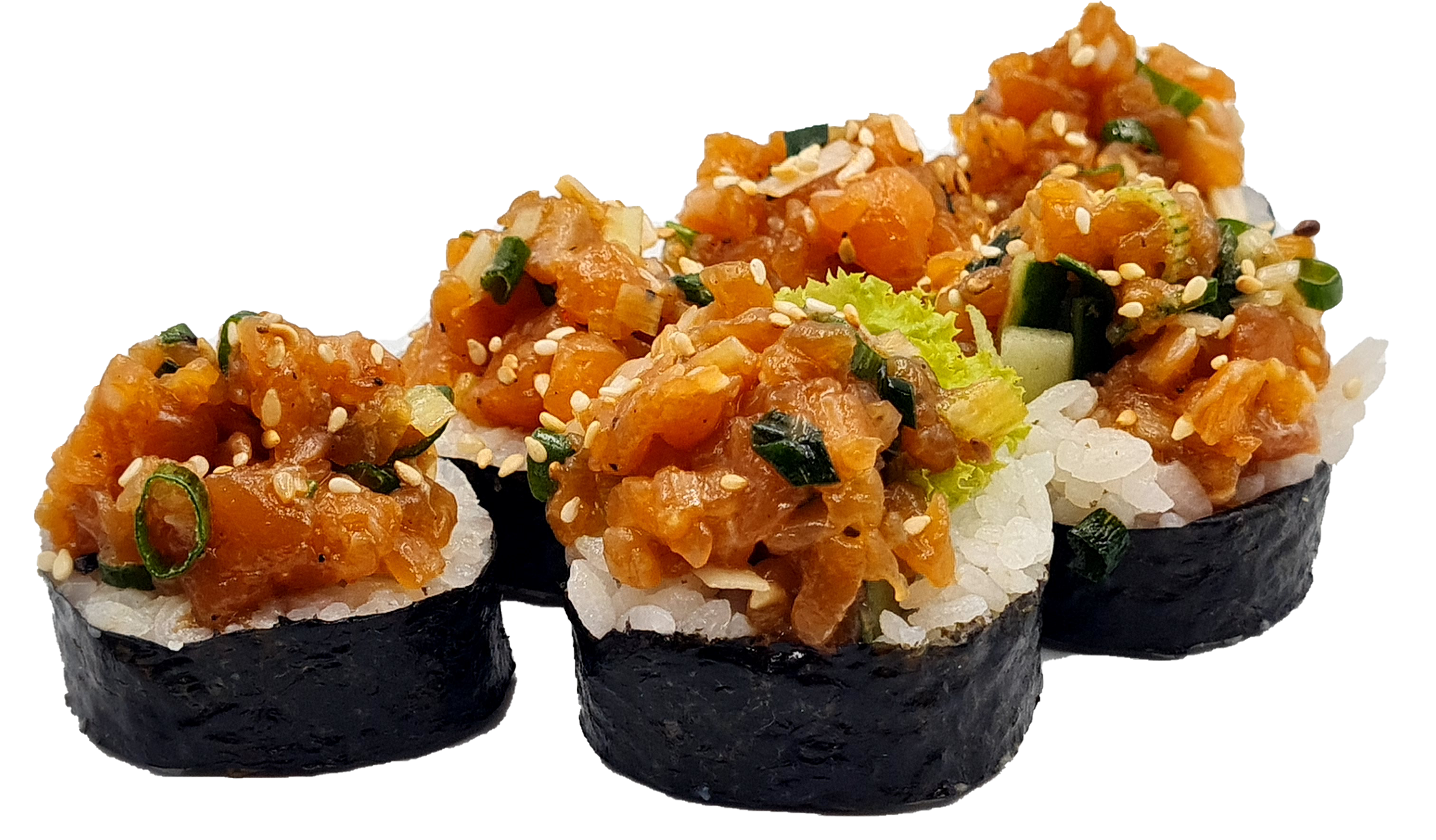 6 pcs. chopped tuna, lettuce, cucumber, srilacha sauceFUTOMAKI SAKE YAKI