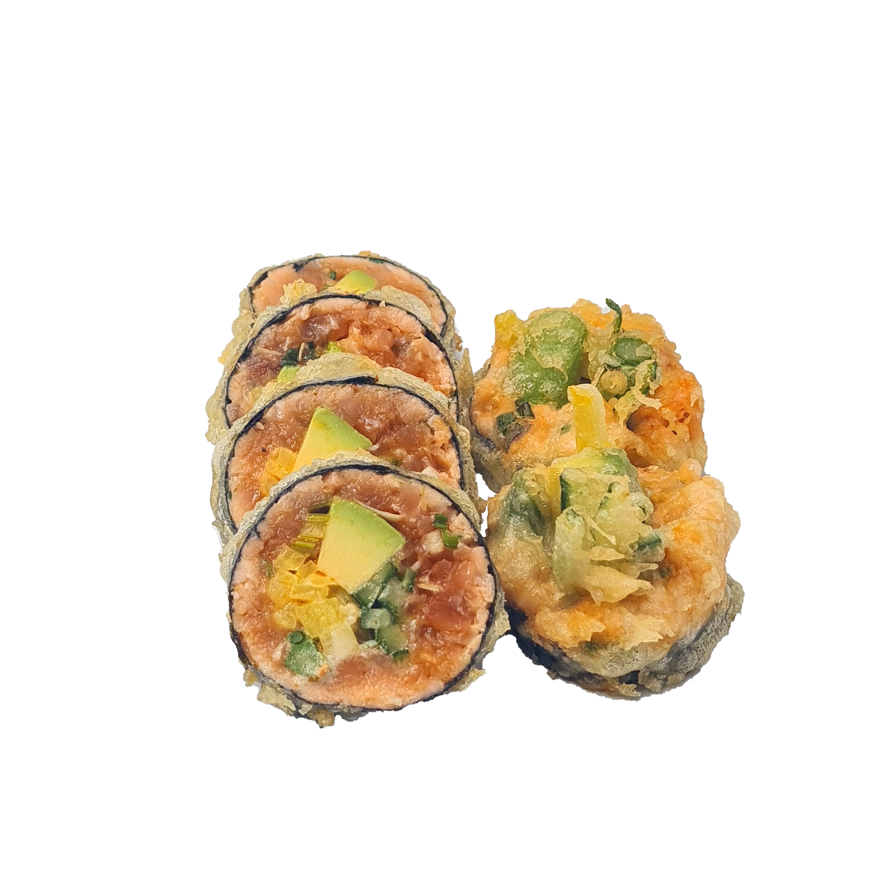 8 pcs. salmon, all coated in tempera, kabayaki sauceFUTOMAKI TAI TEMPURA