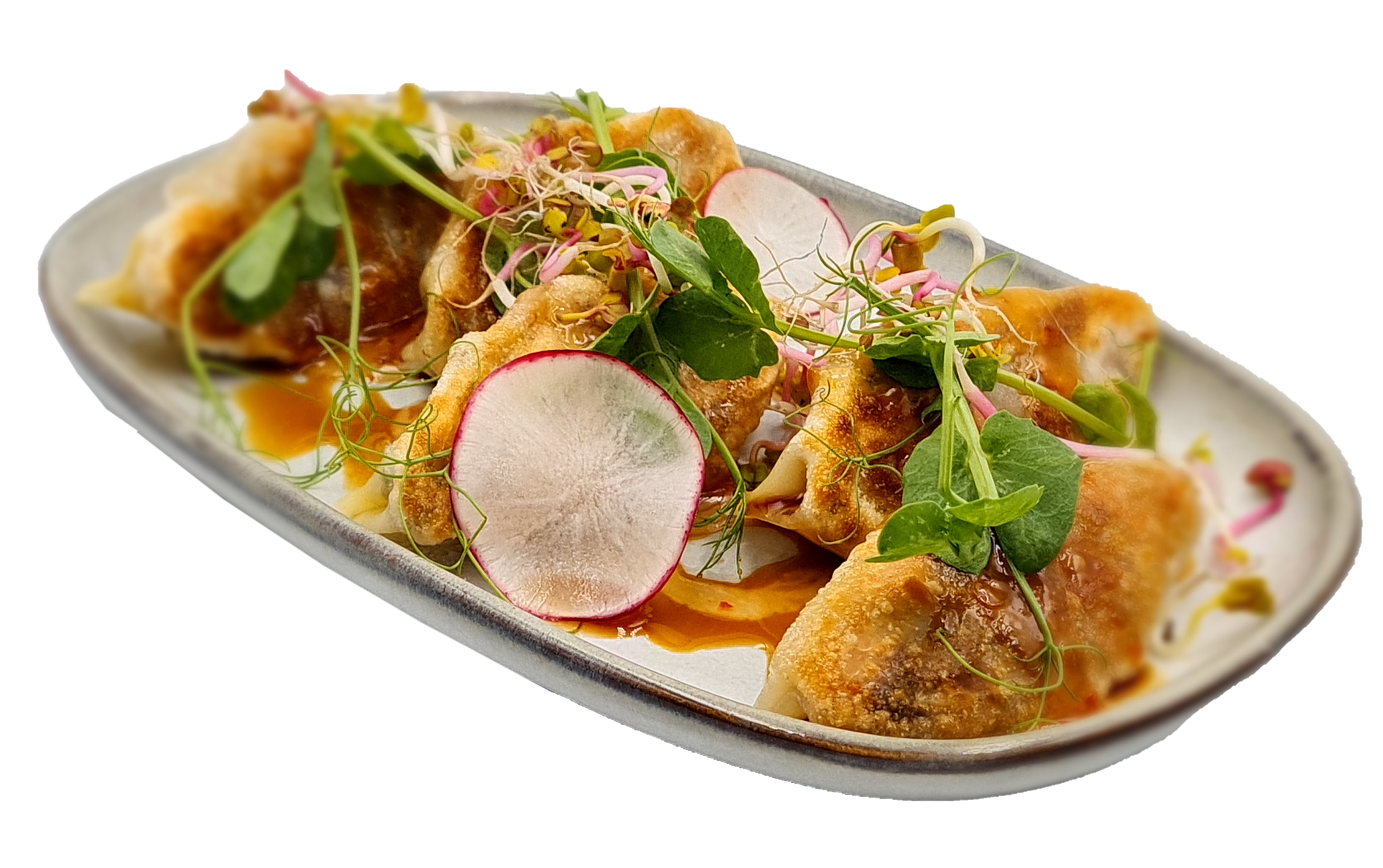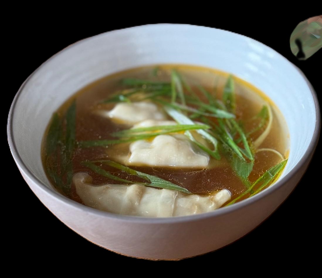 makaron w esencjonalnym bulionie z boczkiem, pierożkami dim sum, grzybami, jajkiem, warzywami, olejkiem chilly
