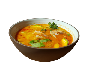 makaron w esencjonalnym bulionie z krewetkami, grzybami, pak choy,edamame, imbir, olejek la yu